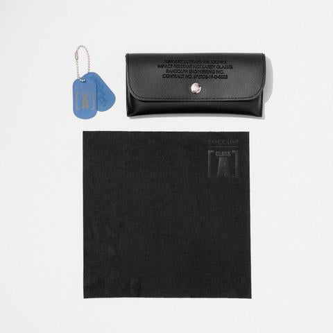Experience elegance with an edge through the all-new Patriot Blue Class A Aviator. Inspired by the Military and its Class A uniforms, the Patriot Blue Class A Aviator is handcrafted in the USA and features military grade Patriot Blue Cerakote, polished chrome screws, crystal bayonet temples, and American Grey SkyTec™ glass lenses. Each pair in this collection comes with a matching Military Dog Tag, Embossed Printed Military Spec Case, and a Standard Issue Cleaning Cloth.